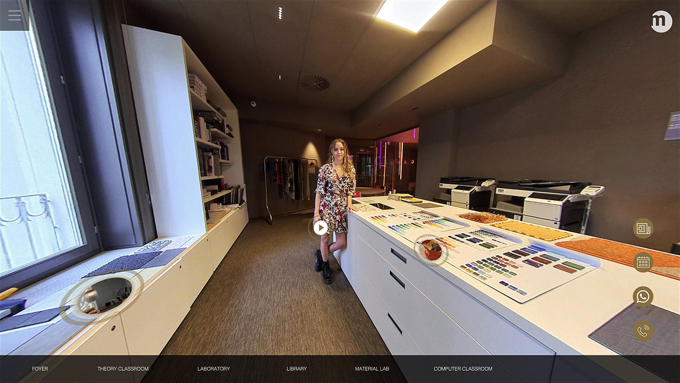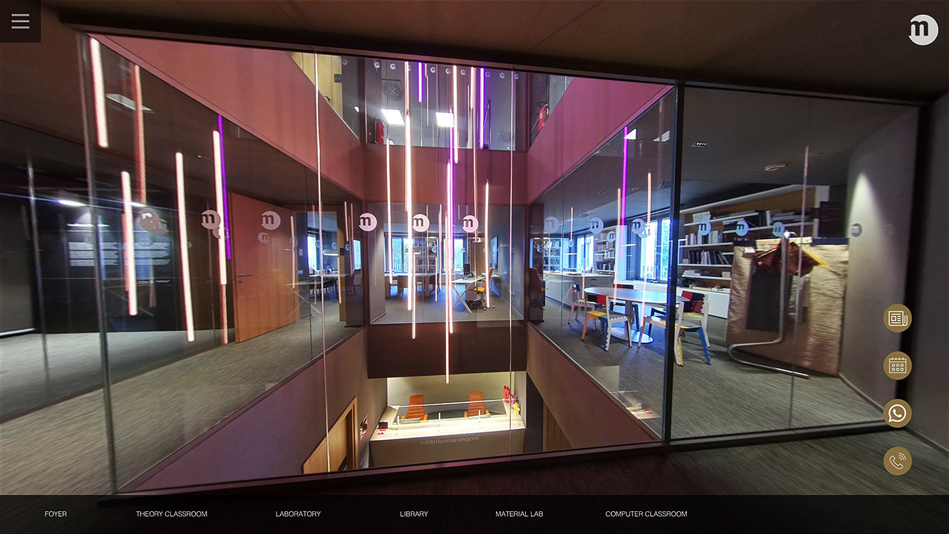 In partnership con SHAA ed Equilibrium, abbiamo pensato di realizzare quattro diversi tour virtuali, uno per ogni sede, tramite i quali si ha la possibilità di visitare le aule e di approfondire contenuti multimediali inseriti in hotspot dedicati. Per ogni sede è stato selezionato uno studente che, attraverso la realizzazione di video 360°, accoglie il visitatore e illustra le finalità di ogni aula.